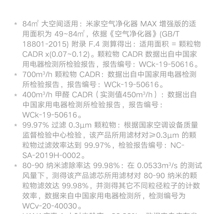 颗粒物CADR值700