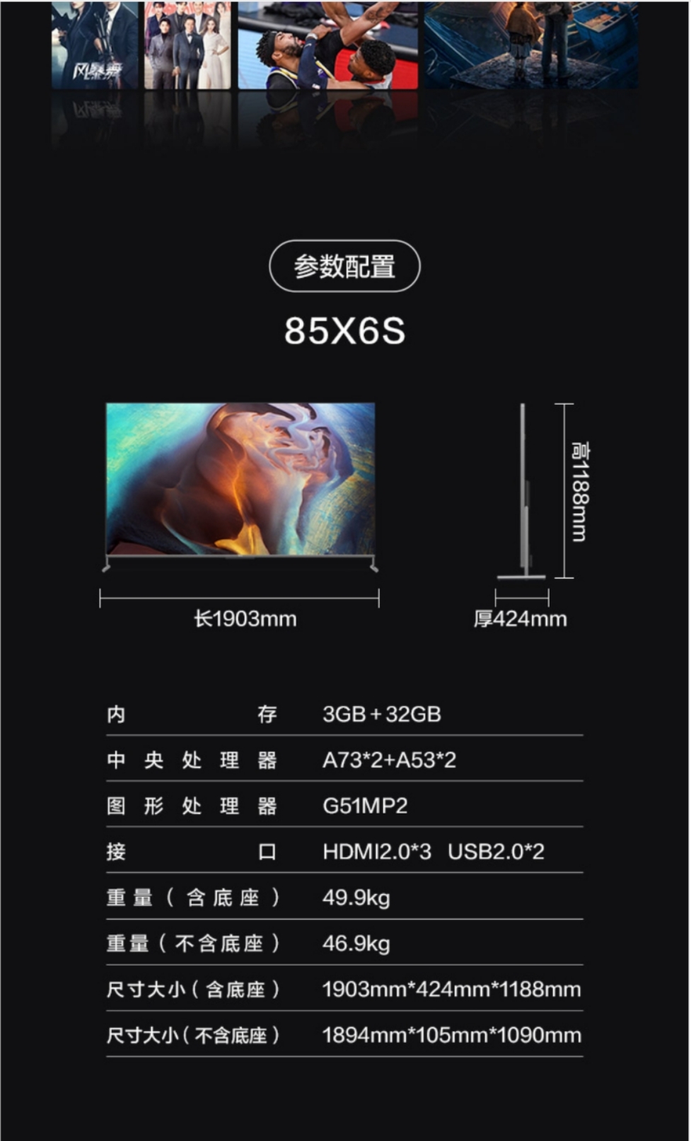 输入端口USB 接口 *2 网络 LAN*1 HDMI 接口*3 AV IN*1